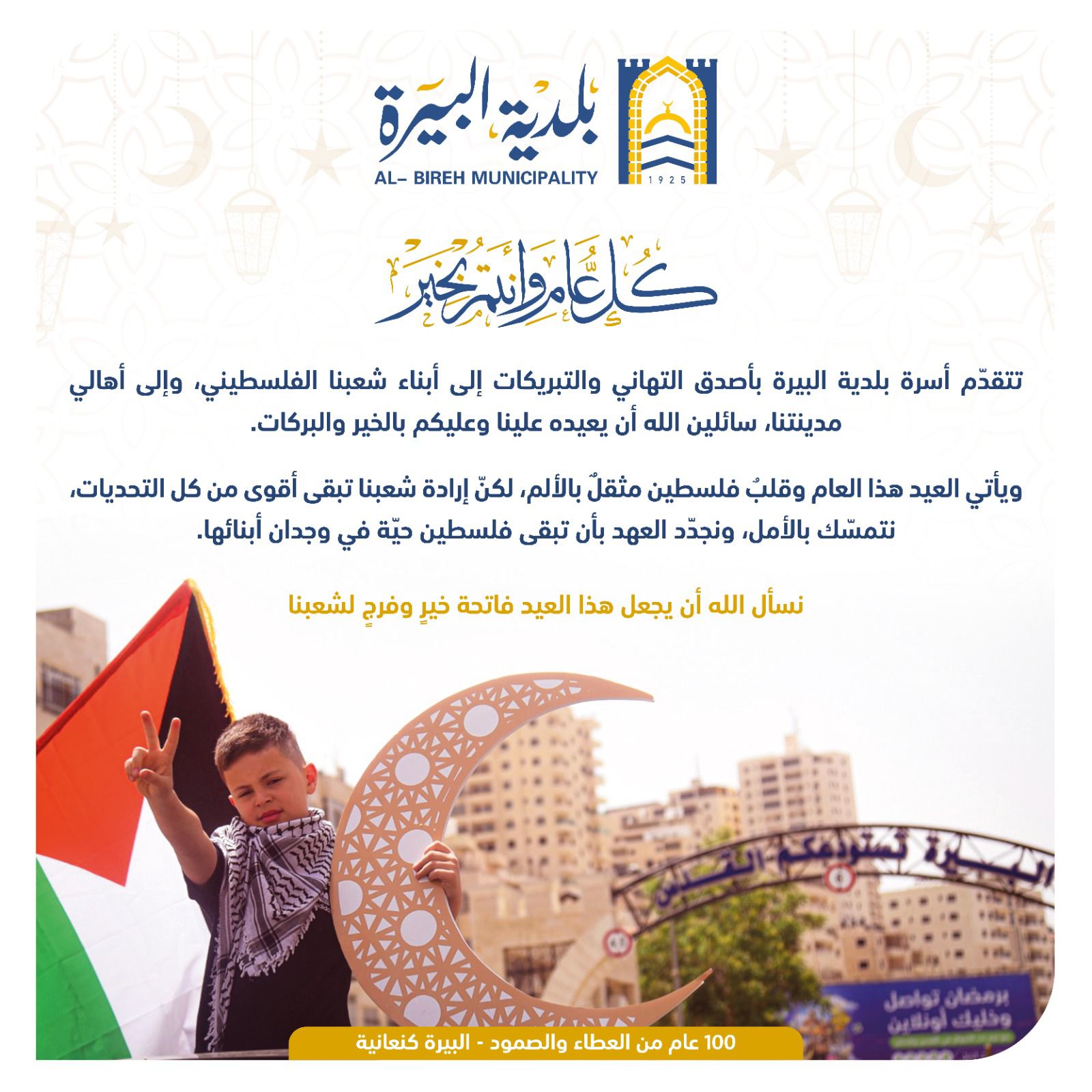 تُعلمكم بلدية البيرة بأن عطلة عيد الفطر المبارك ستبدأ اعتبارًا من صباح يوم غد الخميس، وتستمر حتى مساء يوم الأحد.