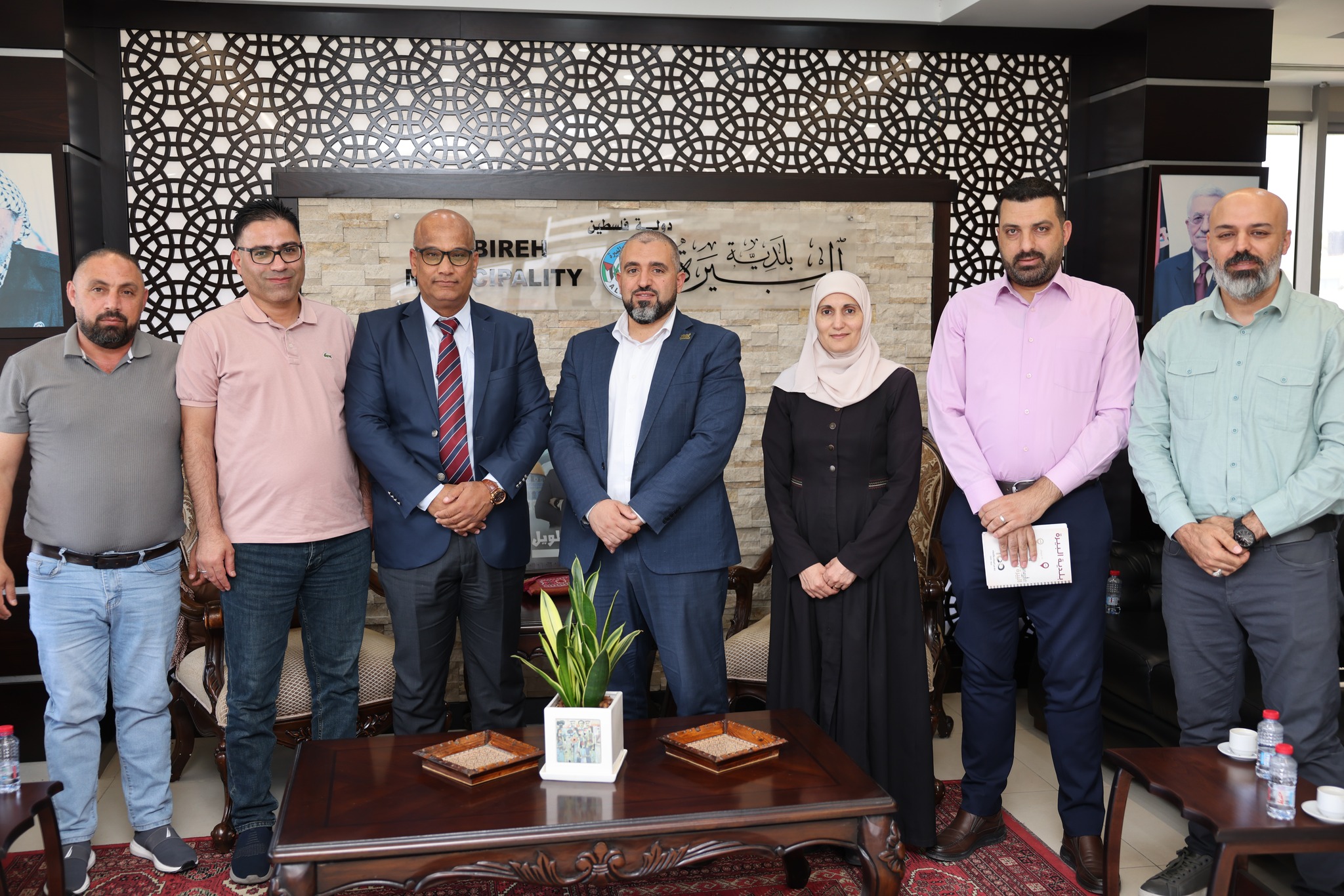 البيرة – استقبل رئيس بلدية البيرة بالإنابة، المهندس روبين الخطيب، في مكتبه، مدير عام ضريبة الأملاك السيد محمد يوسف، والوفد المرافق له، بحضور طاقم بلدية البيرة. وهنأ الخطيب خلال اللقاء السيد يوسف بمناسبة توليه مهامه الجديدة، متمنياً له التوفيق والنجاح في أداء مسؤولياته. وبحث الطرفان آفاق التعاون المشترك، لا سيّما فيما يتعلق بآليات تحصيل المستحقات