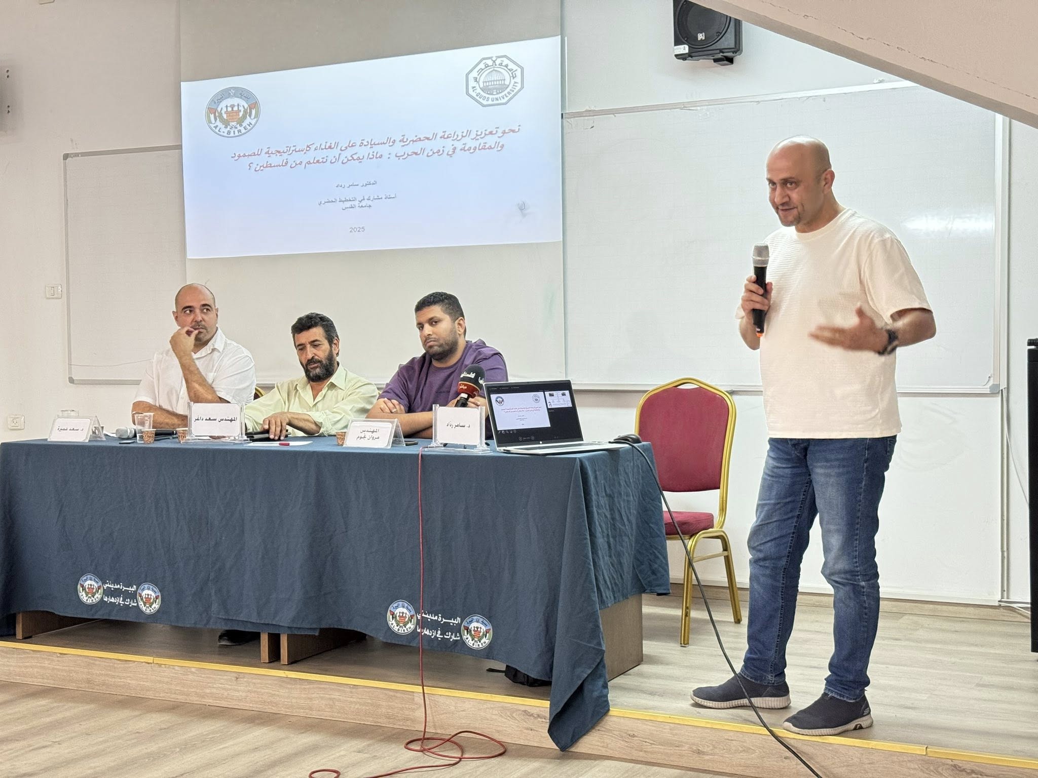 نظمت بلدية البيرة، مساء أمس الأربعاء، حوارية متخصصة بعنوان “الزراعة والغذاء في أوقات الطوارئ والحرب: تجارب ونماذج عملية”، وذلك في مركز البيرة الثقافي، بحضور رئيس بلدية البيرة بالانابة المهندس روبين الخطيب وعدد من اعضاء المجلس البلدي بالاضافة الى المختصين والمهتمين في الشأن الزراعي والغذائي وفي كلمته خلال افتتاح الحوارية، أكد المهندس الخطيب حرص بلدية البيرة