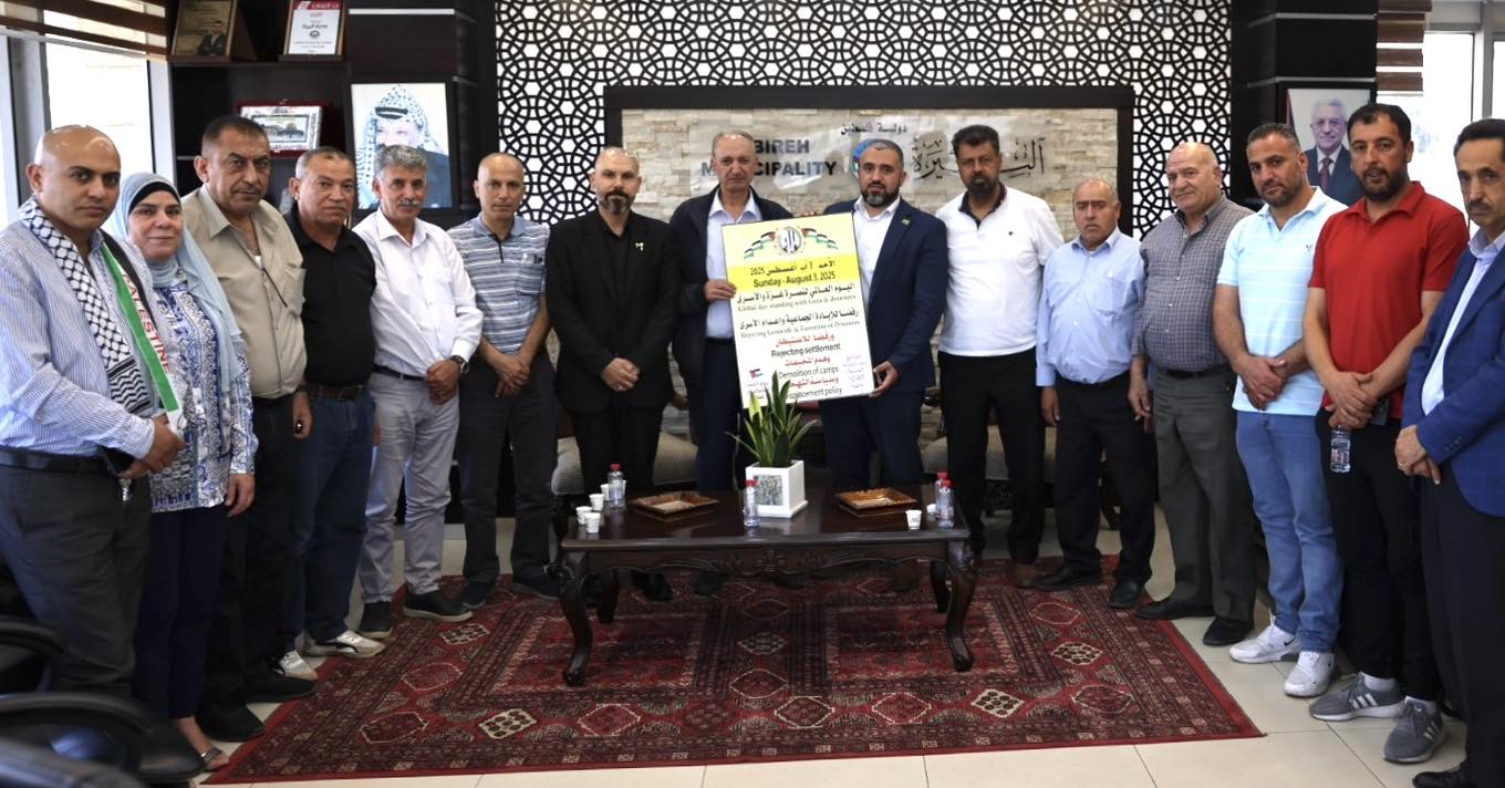 البيرة: (١٦-٧-٢٠٢٥)التقى رئيس بلدية البيرة بالإنابة، م. روبين الخطيب، اليوم ممثلين عن القوى الوطنية والإسلامية ومنظمة التحرير الفلسطينية والهيئة العليا لمتابعة شؤون الأسرى والمحررين ونادي الأسير ولجنة الأسرى والمحررين وهيئة شؤون الأسـ رى والمحررين، لبحث الاستعدادات لفعاليات اليوم العالمي لنصرة غزة والأسـ رى ورفض الابادة الجماعية واعدام الأسرى والمقرر يوم الأحد الموافق ٣-٨-٢٠٢٥ من خلال